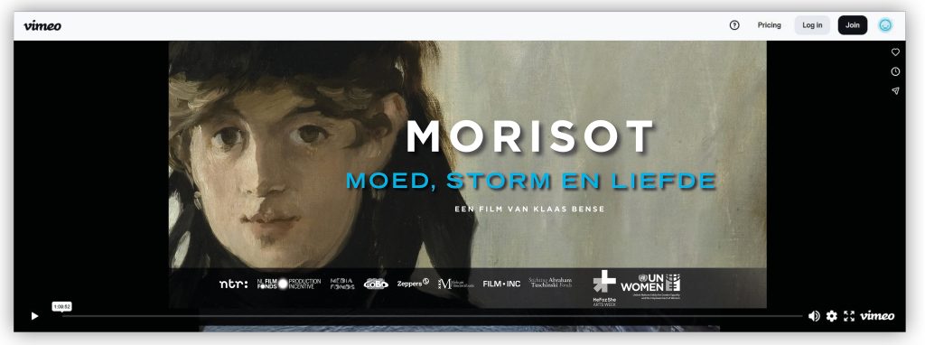 In the film, director Klaas Bense goes, in France, in search of the origin of an unknown painting depicting Berthe Morisot. By means of his investigations, he sketches a lively and colourful portrait of the artist’s eventful life and discovers that she is a powerful source of inspiration for young women today.